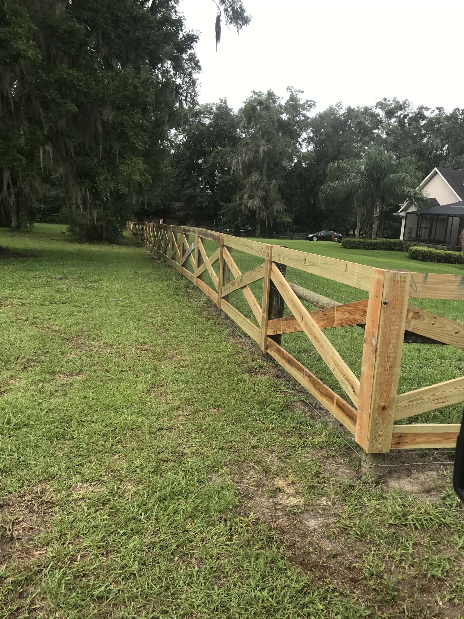 We build each crossbuck fence using high-quality pressure-treated wood, ensuring durability through Florida’s heat, rain, and humidity. The additional boards offer enhanced visibility and containment, making this fence ideal for horses, property boundaries, and entryways where you want your fencing to stand out.